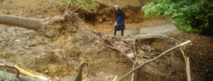 “La situazione attorno ai monti Gledić e nel villaggio di Rakija è molto problematica. Infrastrutture, collegamenti stradali, macchinari agricoli e frutteti sono devastati. Da noi a Rakija lo scenario è piuttosto tragico, probabilmente non riconoscereste la nostra aia, la cantina, il distillatore… almeno nessuno è rimasto ferito. In questo momento dobbiamo prenderci cura degli animali, dei frutteti e restaurare gli edifici danneggiati. Il problema maggiore è dato dal blocco dei collegamenti stradali a causa di una frana. Più di cento metri di strada sono ricoperti da fango e materiale roccioso. In questo momento l’unico modo di raggiungere Rakija è camminando attraverso i boschi. Il cibo non manca, ma l’acqua delle nostre sorgenti è inutilizzabile a seguito dell’alluvione. Molti nostri macchinari – il trattore, gli innaffiatori, le seghe – sono distrutti. Alcuni siamo riusciti a salvarli dal fango, ma non sappiamo con certezza se sono ancora funzionanti. La cantina è stata inondata ma il distillato conservato nelle botti non è andato perduto. Tuttavia i documenti, la grappa già imbottigliata, il distillatore, la stampante per le etichette delle bottiglie, tutto distrutto. Avremo bisogno di settimane e mesi per risistemare tutto, e nemmeno sappiamo se ce la faremo. La parte più ardua sarà comunque ripristinare la linea stradale, poiché avremo bisogno di mezzi pesanti…”