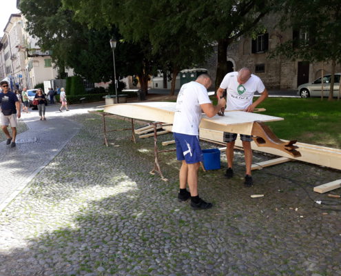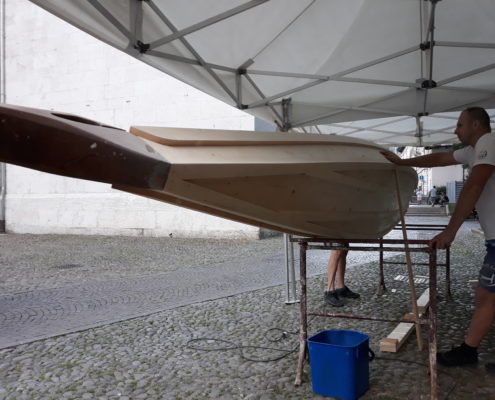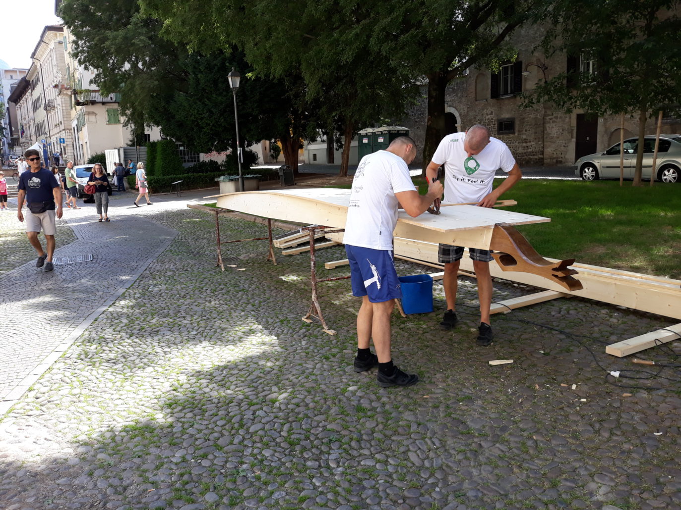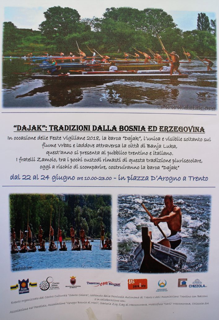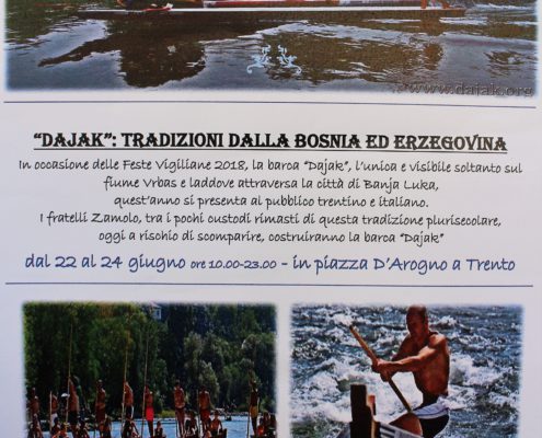 Ecco alcune fotografie dell’ imbarcazione fluviale bosniaca dajak all’apertura del Palio dell’Oca domenica 24 giugno, in occasione delle Feste Vigiliane di Trento. La barca dajak è tipica di Banja Luka, città della Bosnia settentrionale bagnata dalle rive del fiume Vrbas. Tra i pochi esponenti della costruzione di queste particolari barche, si distinguono i fratelli Zamolo che, qui a Trento, hanno potuto costruire e assemblare tutti gli elementi per realizzare la barca dajak e inaugurarla così nelle acque trentine del fiume Adige.