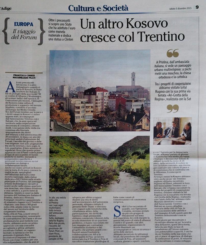 Un articolo de L’Adige 5/12/2015 scritto da Francesca Correr e Massimiliano Pilati del Forum Trentino per la Pace.