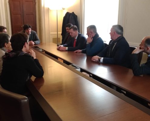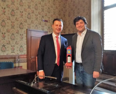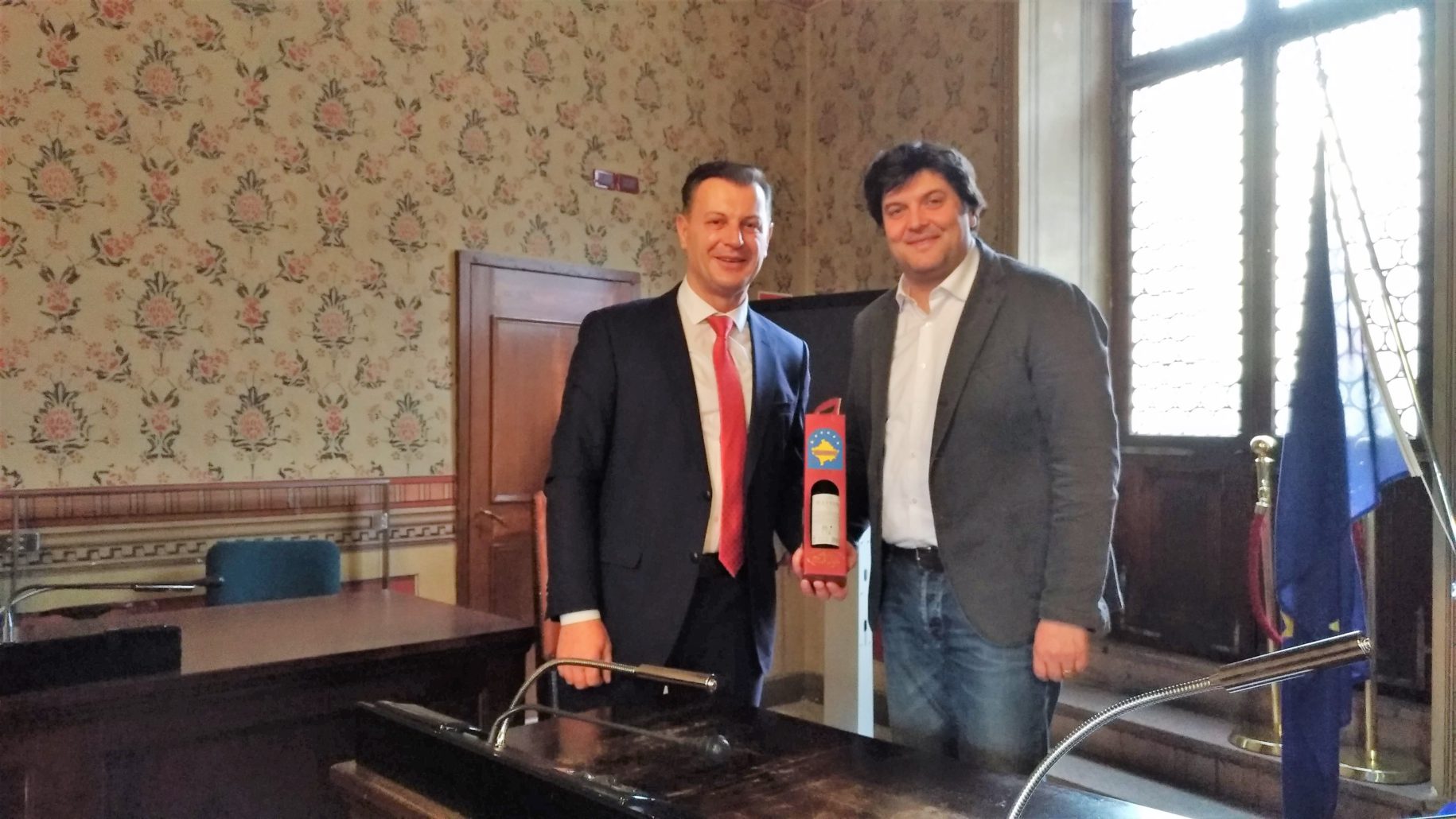 A fronte della reciproca presentazione dei Comuni rappresentati dai due sindaci presenti, il Sindaco Ahmeti ha avanzato una proposta di collaborazione tra le due amministrazioni, all’interno della cornice di relazioni Trentino-Kosovo che si sono sviluppate già in passato e in diverse direzioni. Oltre a ricordare i primi contatti attivati tra i due territori negli anni ’90 a conclusione del conflitto – che ora si sono trasformate in un’estesa rete di relazioni istituzionali, economiche e sociali -, tali contatti si aprono anche attraverso esperienze personali. Ne sono un esempio Besim Arifi che dal Trentino intrattiene costanti rapporti con la sua comunità di provenienza, e Abedin Salihu che ha raccontato la sua storia di emigrato in Trentino, precisamente a Rovereto, dove ha lavorato per anni, si è formato professionalmente e ha sviluppato le competenze che gli hanno poi permesso di avviare un’azienda in Kosovo che ora impiega oltre 400 dipendenti.
